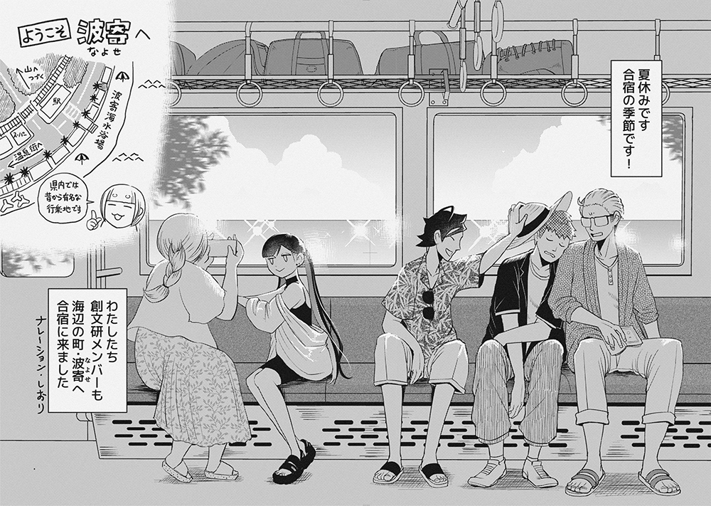 今回は合宿回です。夏休みにサークル合宿に海辺の町にやってきた創文研の面々だが…?!まあだいたい予想どおりの展開になります。学外なので露出度が高くなっていますご注意。